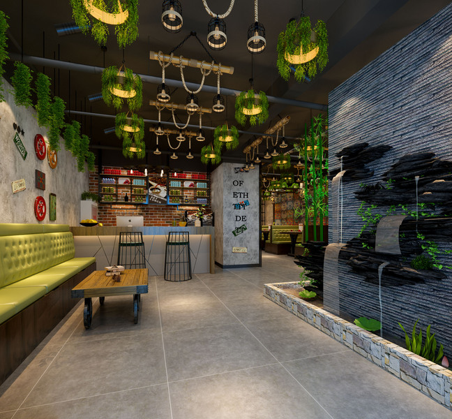 1992效果图-工业风格烤鱼店效果图案例