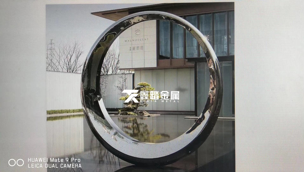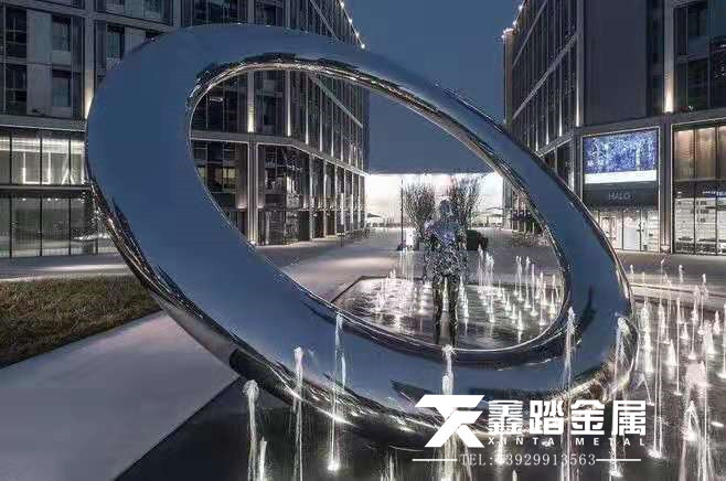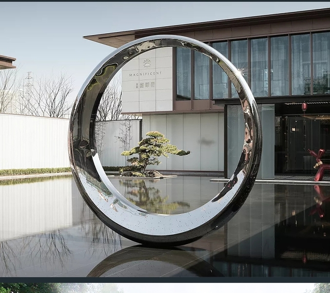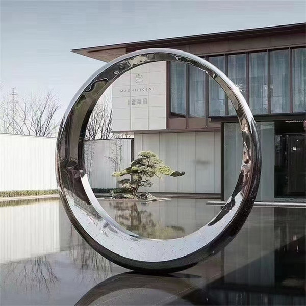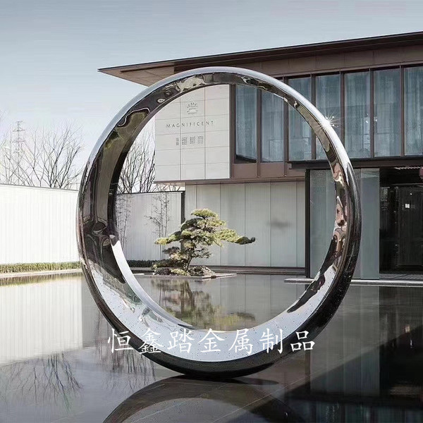 手工锻造镜面不锈钢环形雕塑 户外景观不锈钢圆环雕塑
