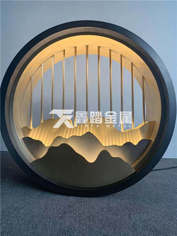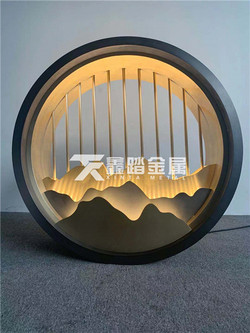 墙体内嵌圆形不锈钢艺术隔断 发光山形金属玄关参考