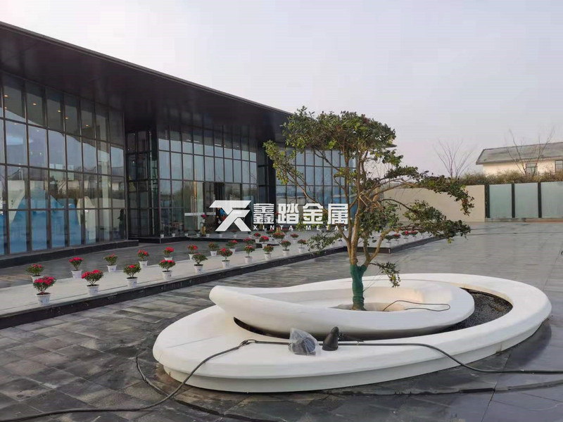 售楼部不锈钢异形树池表面白色漆氟碳