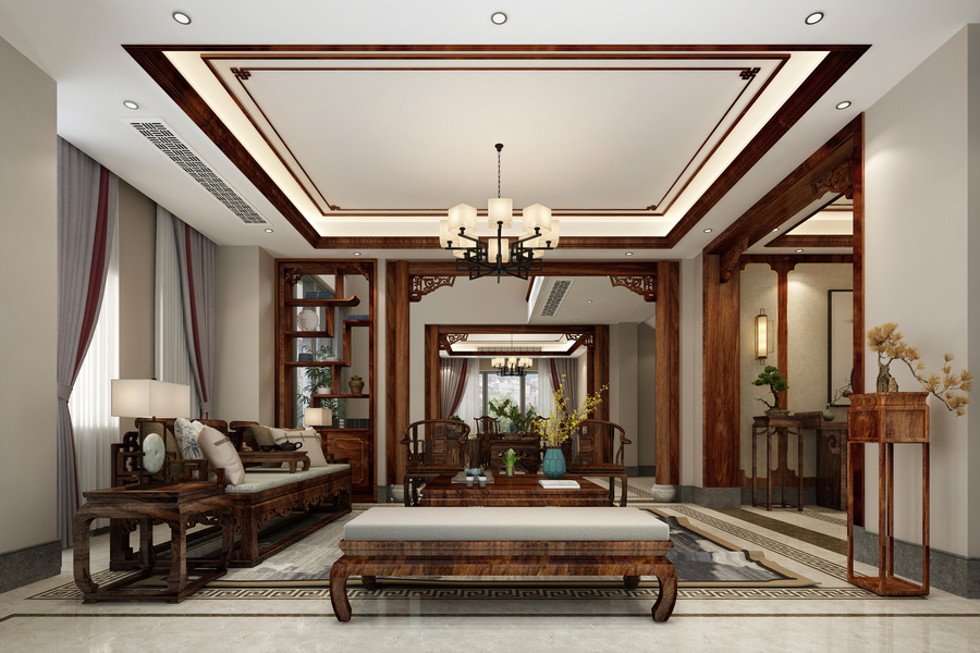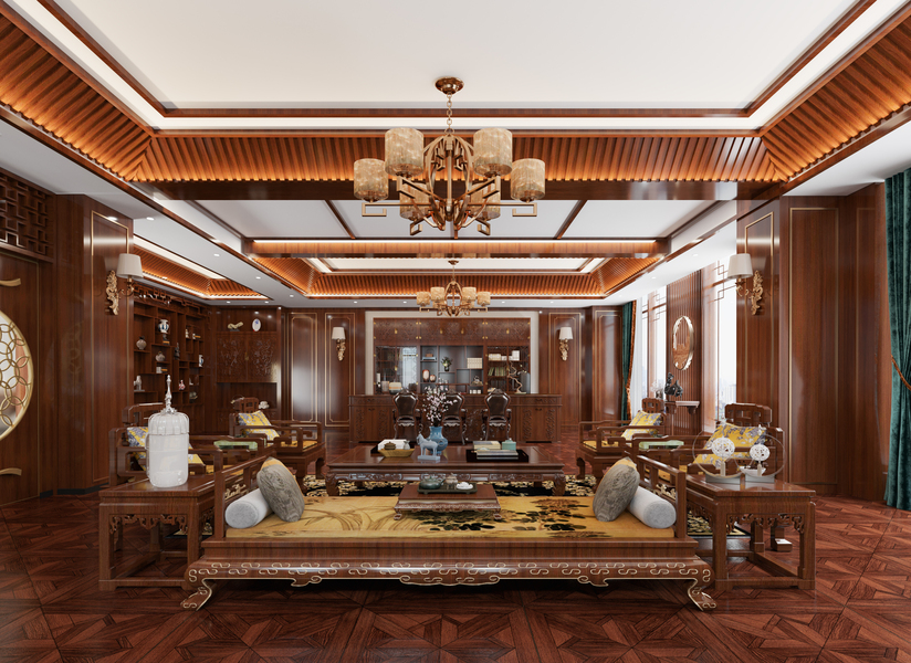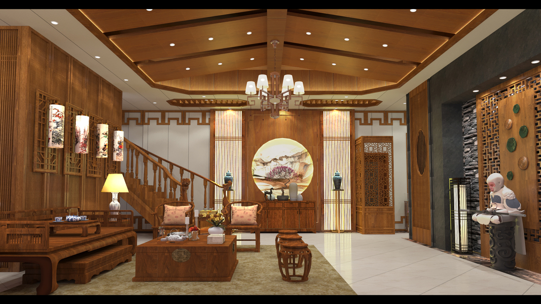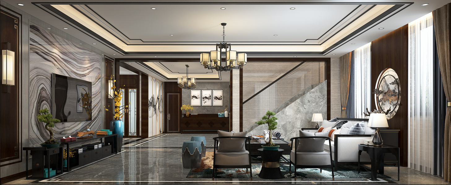 家装新中式轻奢别墅——彰显时光浸润的东方韵味