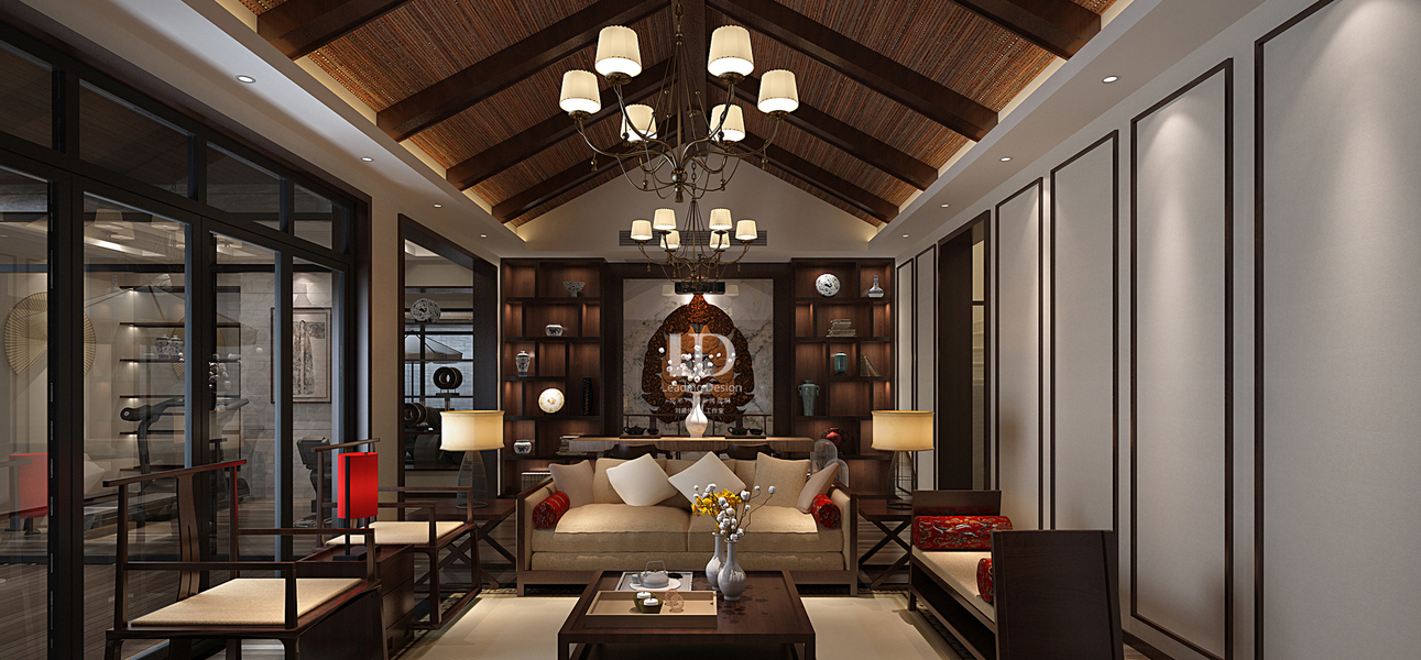 万科哲园叠拼别墅装修设计效果图,万科哲园新中式装修