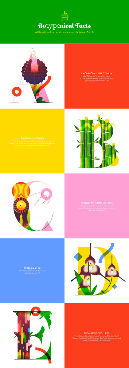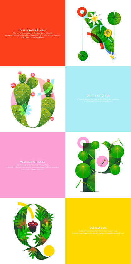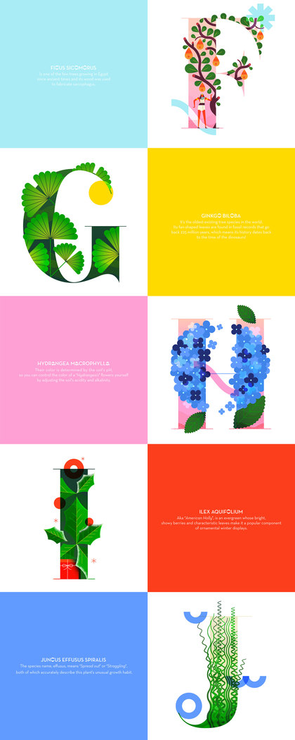 Lorena以首字母从A-Z的植物为题材,设计的视觉海报。