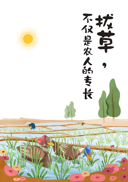 与归来兮有机农庄合作的稻田鸭插画