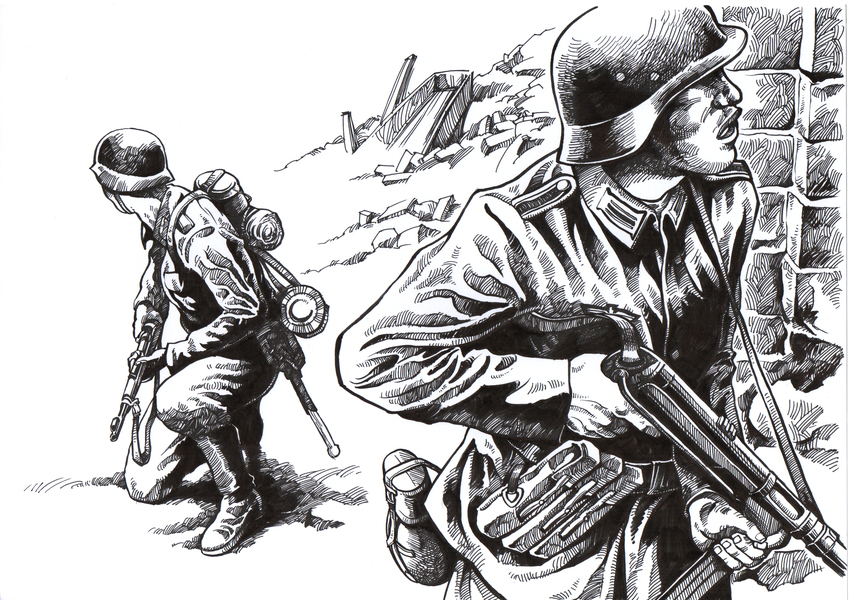 军事插画,肖刚漫画,写实漫画,连环画,肖刚图书插画