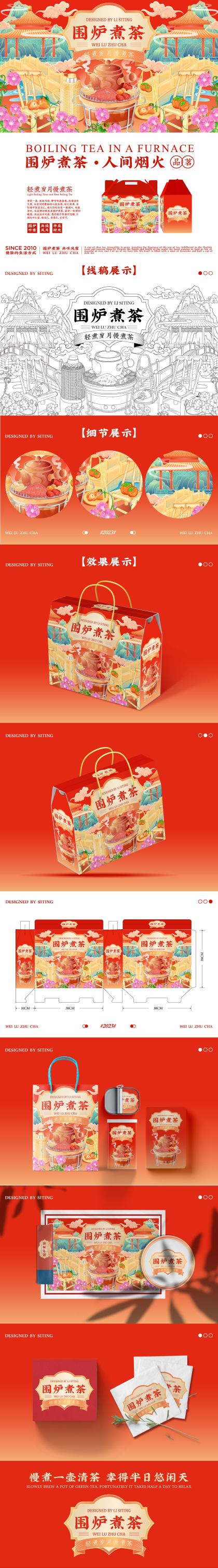 围炉煮茶-餐饮主KV国潮插画包装设计