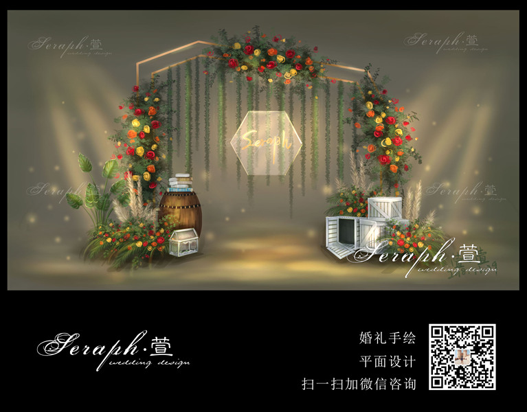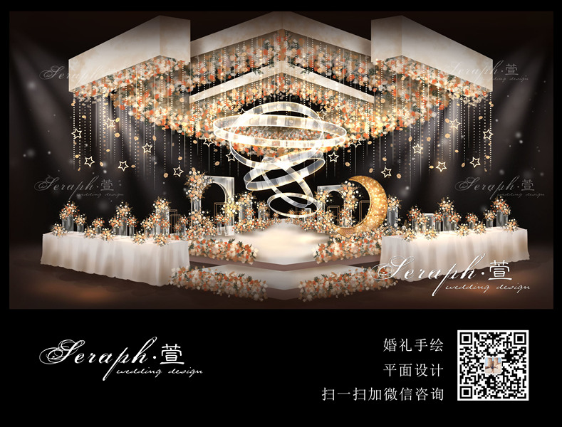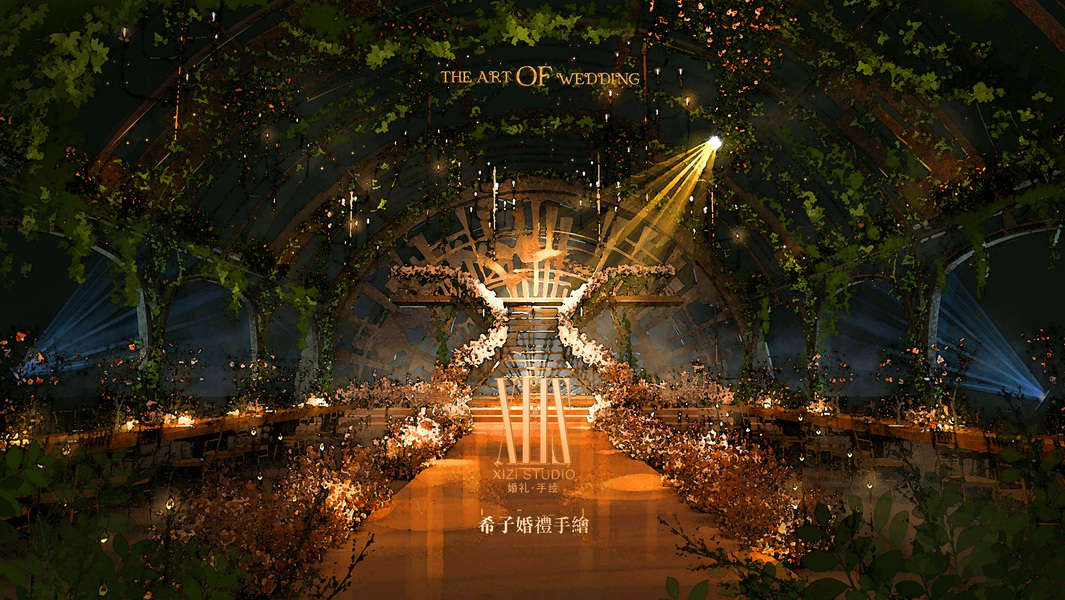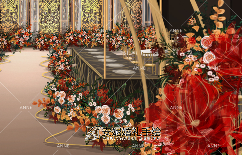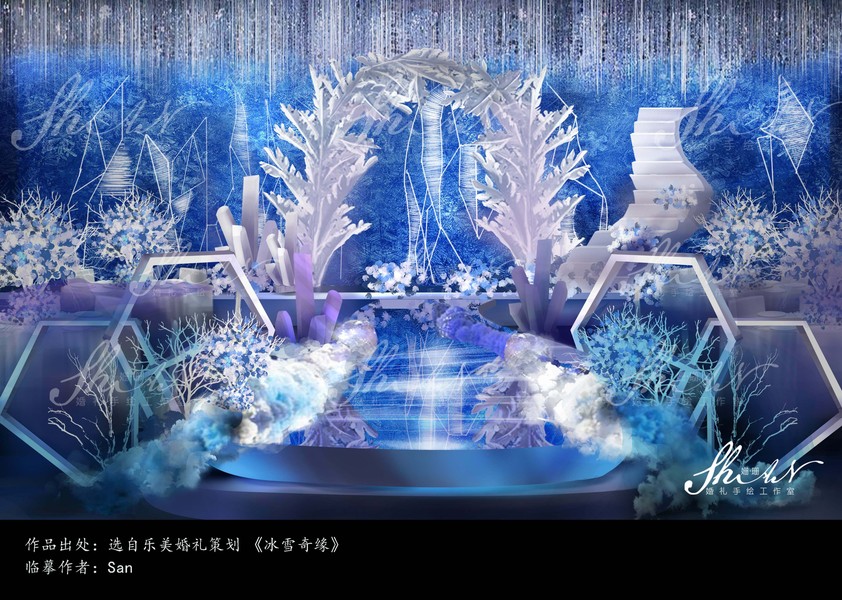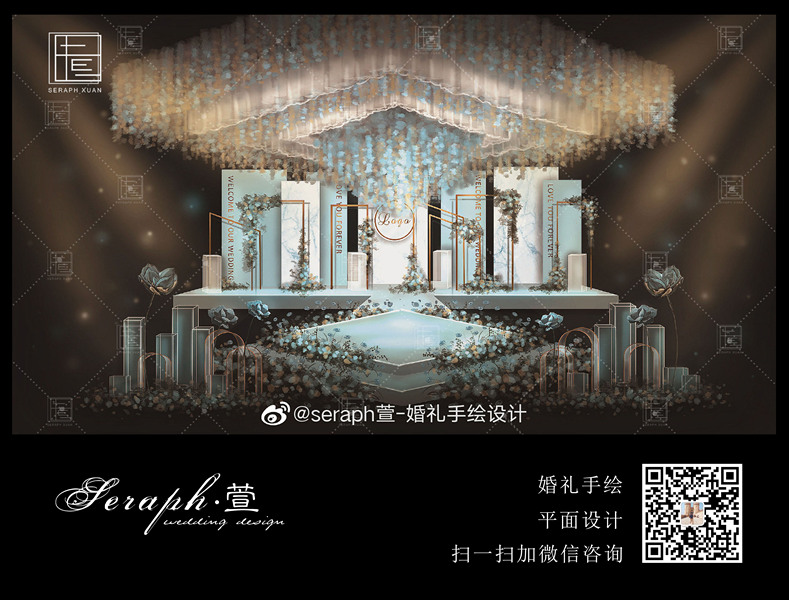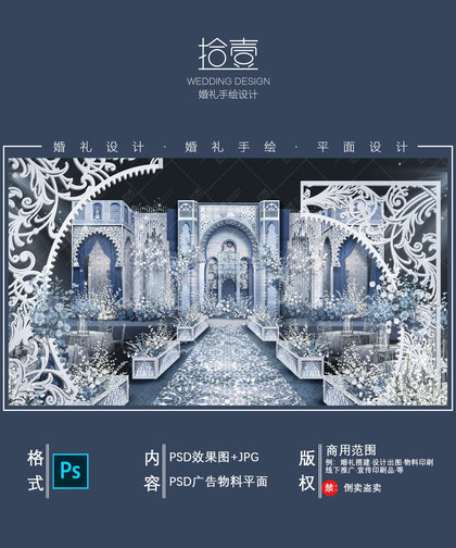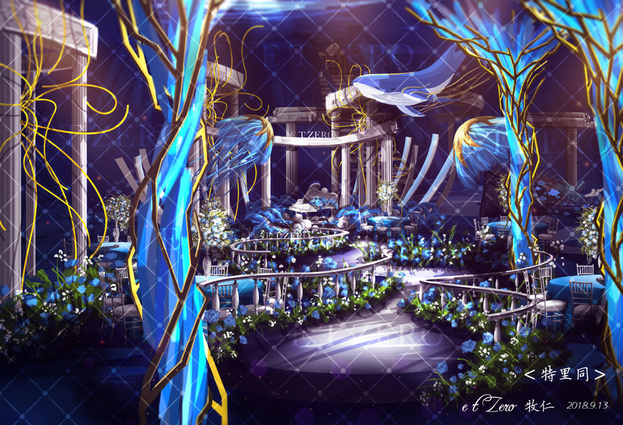 【拾壹婚礼手绘】蓝色摩洛哥现代婚礼效果图