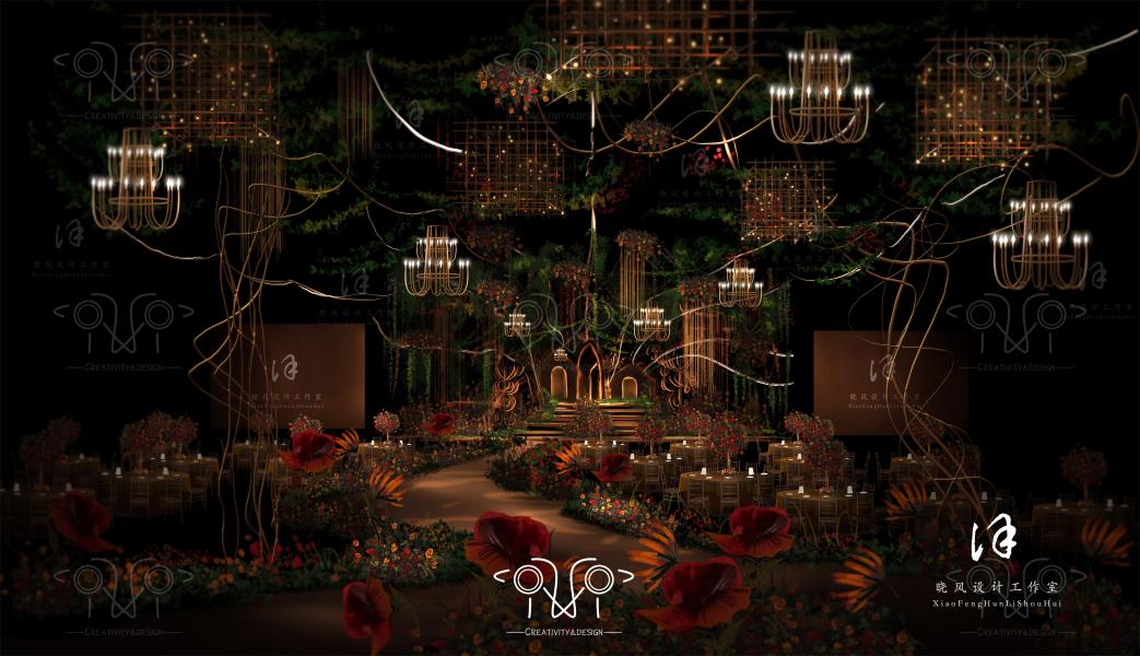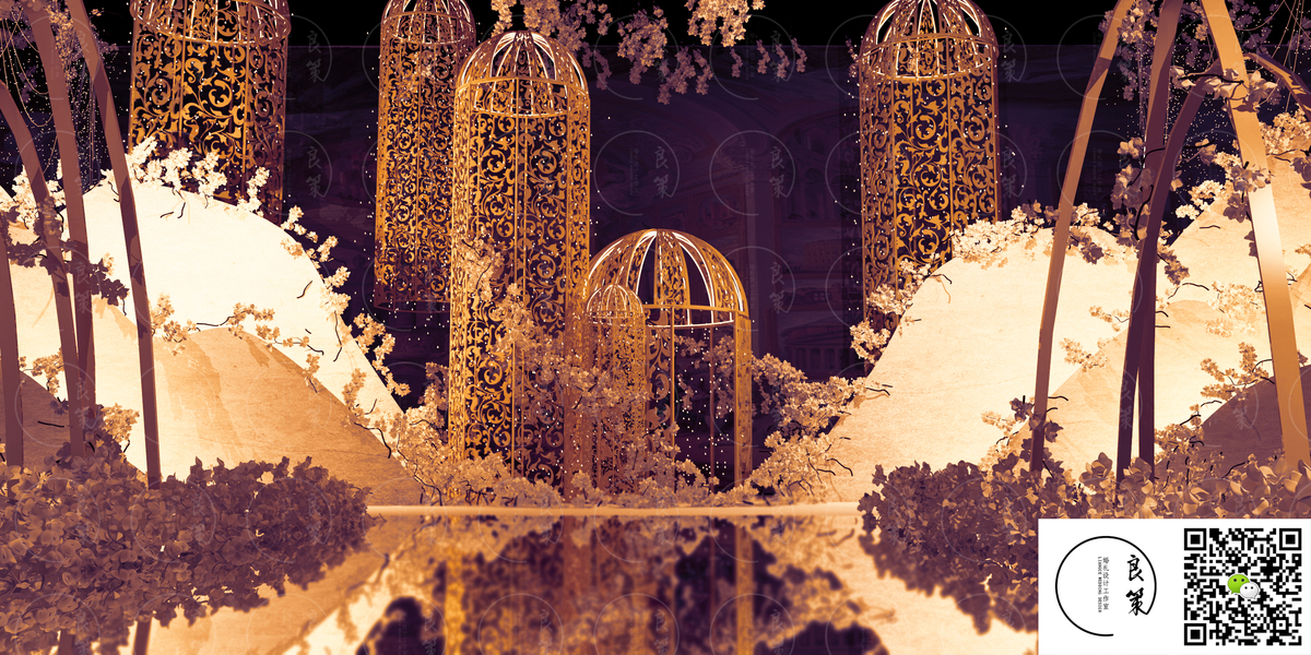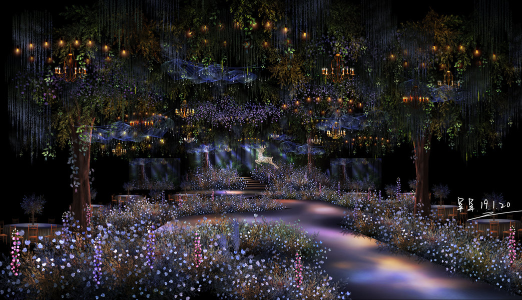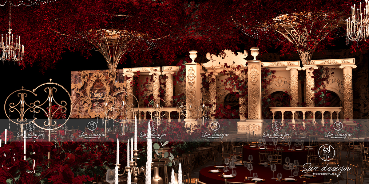 SurDesign树尔设计工作室蓝色系婚礼宴会3D效果图
