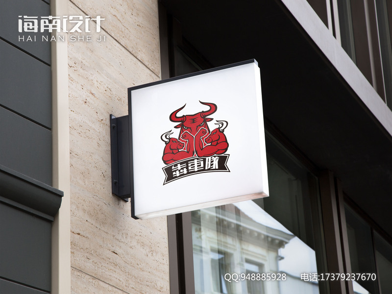 牛卡通logo品牌车队红色霸气三头牛角凶狠酷肌肉设计