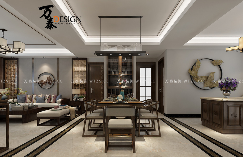 济南万泰装饰绿地柏仕晶舍188平新中式风格装修设计