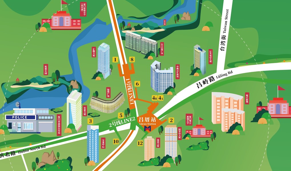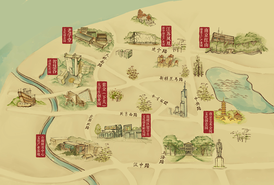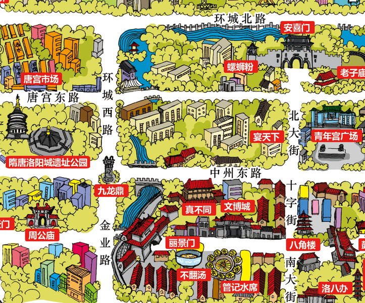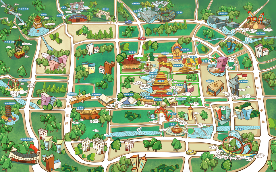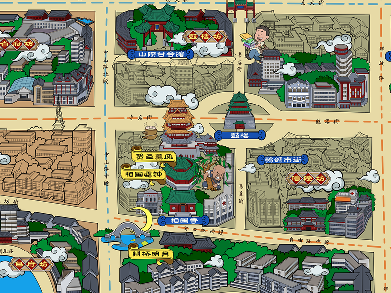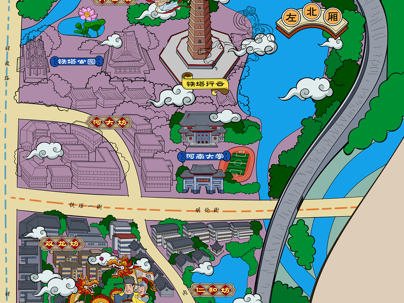 开封汴梁四厢二十坊漫画手绘地图文创系列