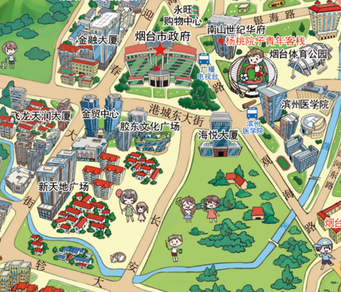 手绘地图,烟台地图,手绘建筑,旅游导览图,手绘城市,烟台,城市风貌图,烟台手绘地图,旅游地图