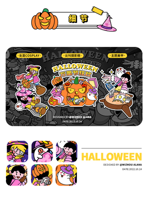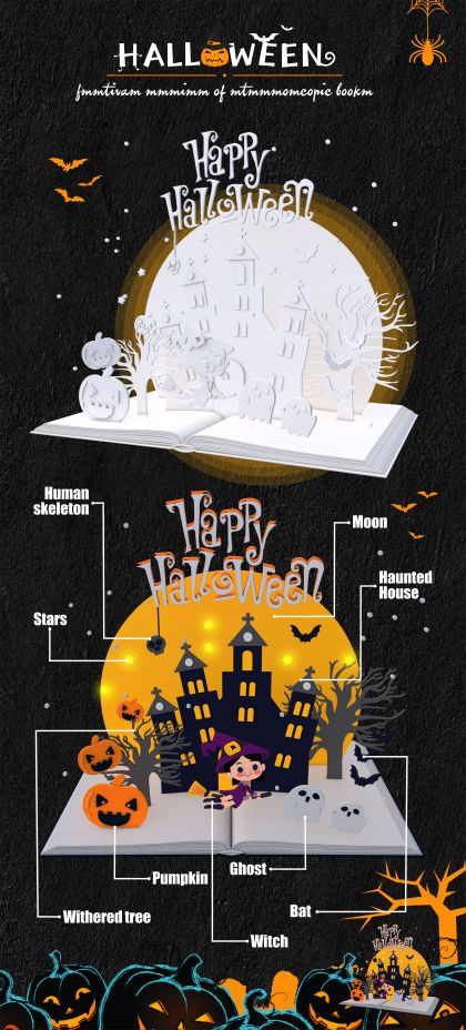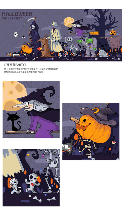 深蓝色卡通万圣节前夜节日相关知识普及课件PPT模板