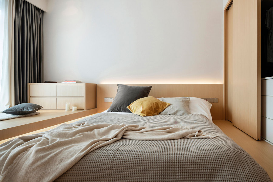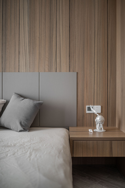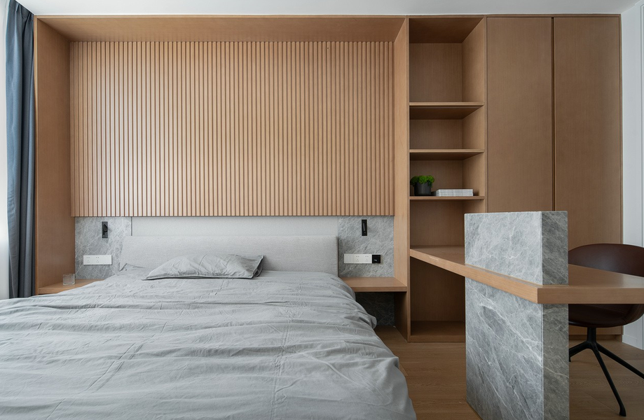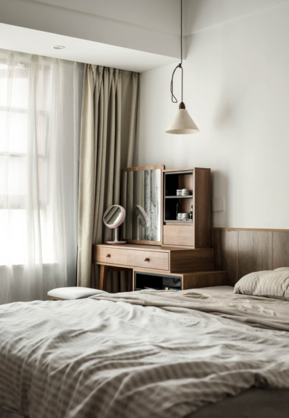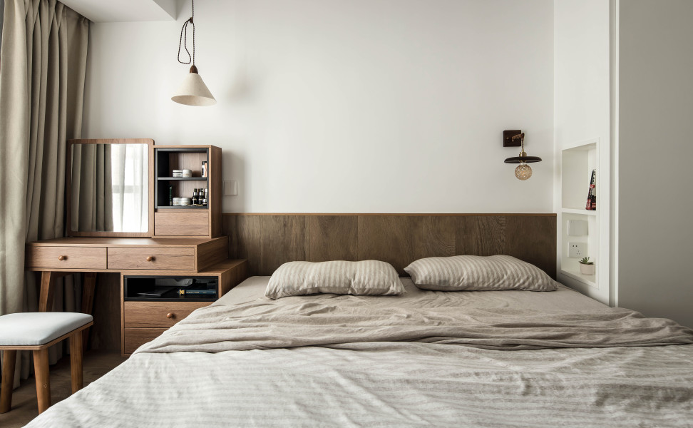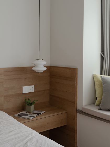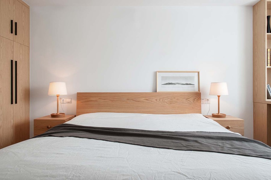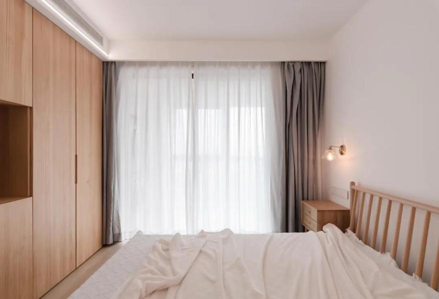 116㎡简约原木风格新房装修,松木电视柜+电动投影幕布
