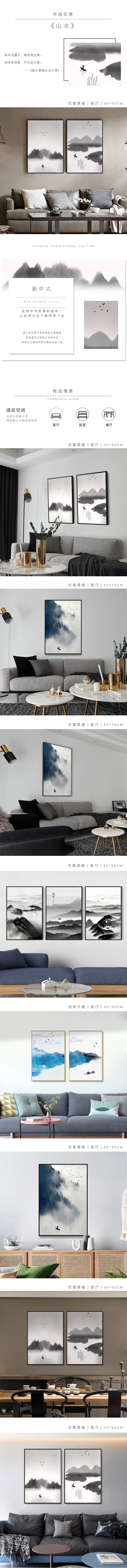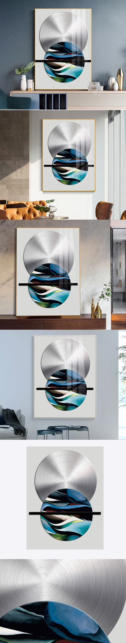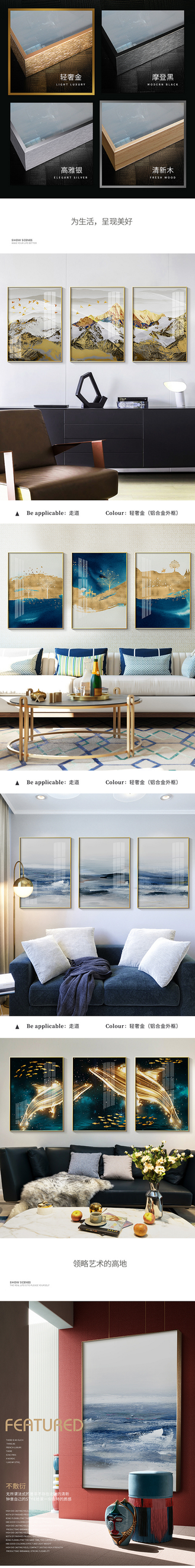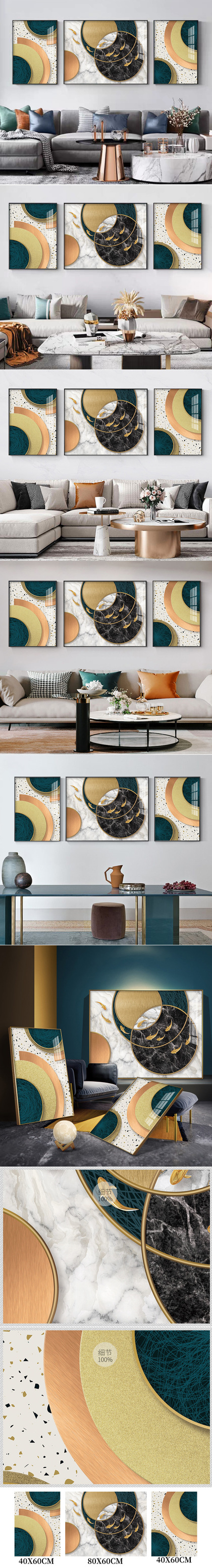 现代新中式风格金色蓝色几何客厅玄关装饰画