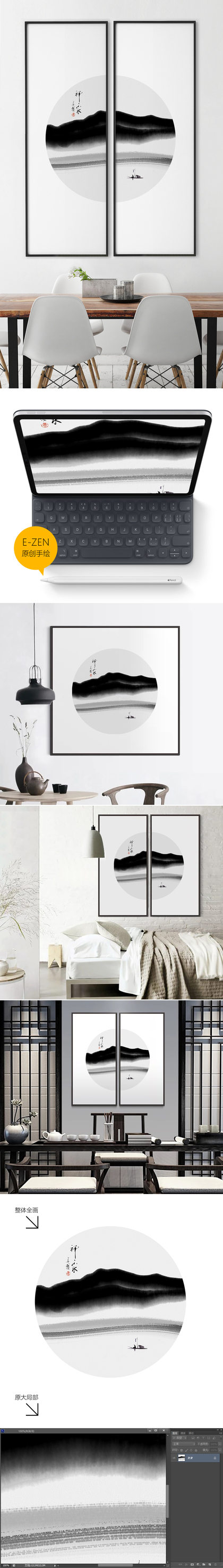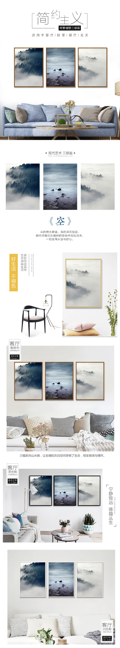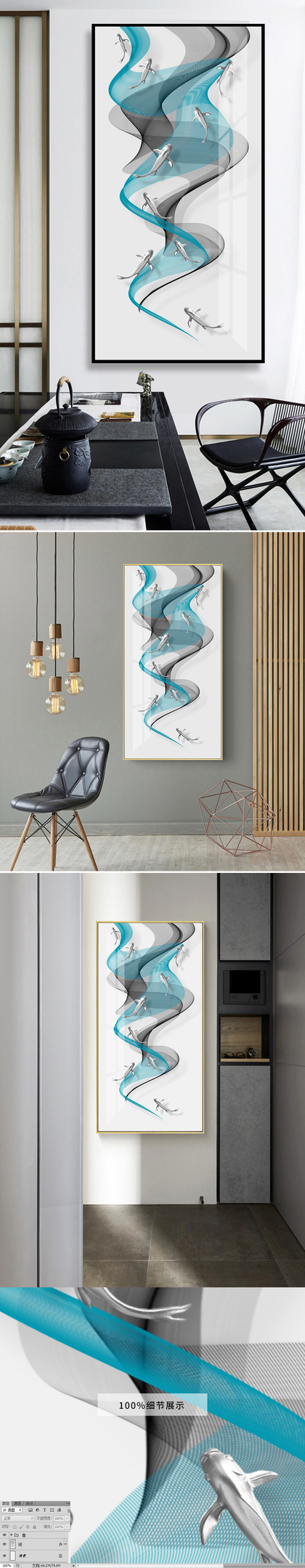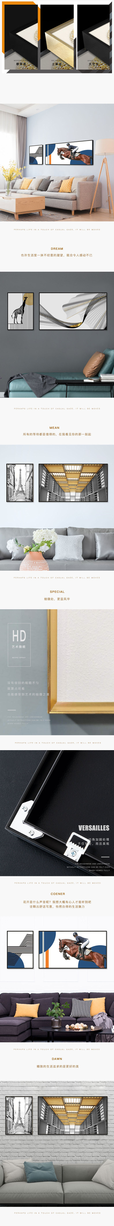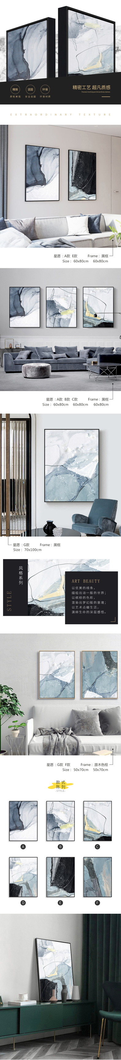 现代新中式风格金色蓝色几何客厅玄关装饰画