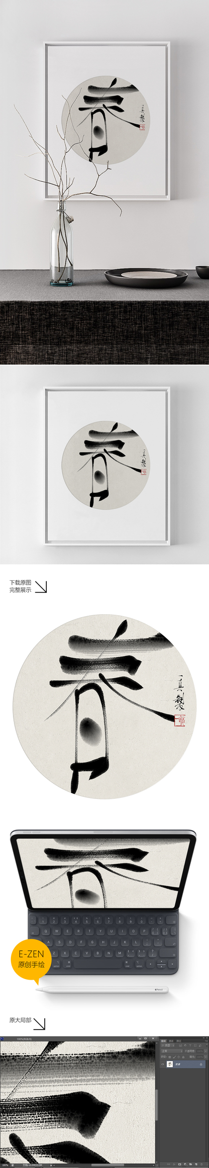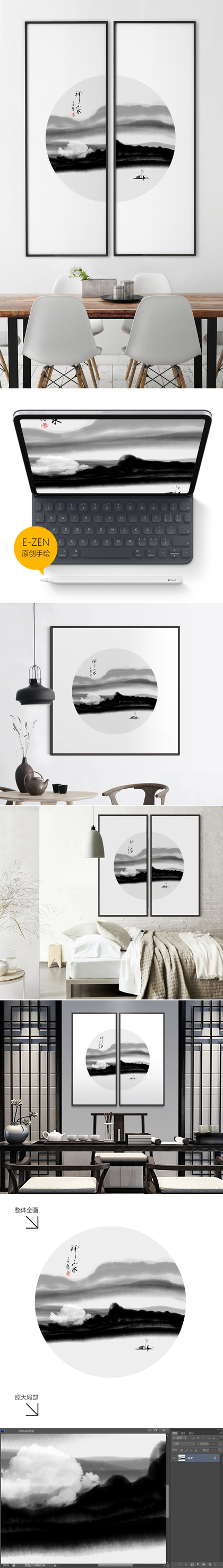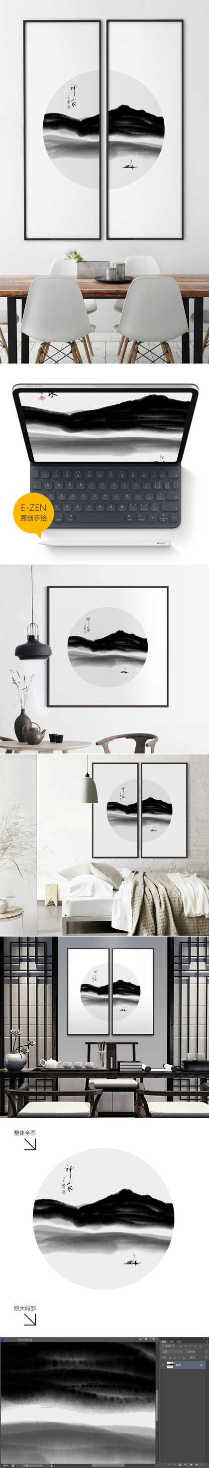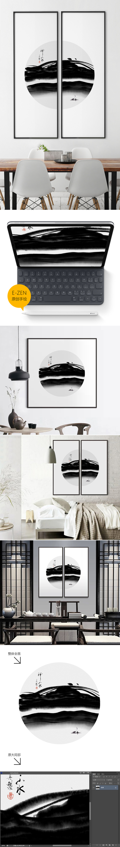 现代新中式风格金色蓝色几何客厅玄关装饰画