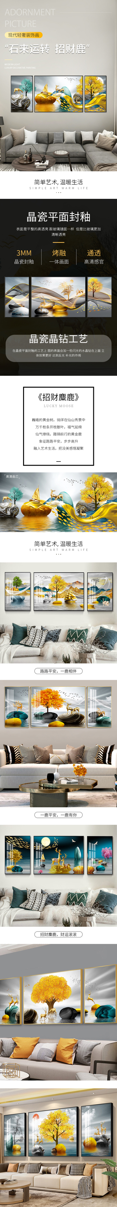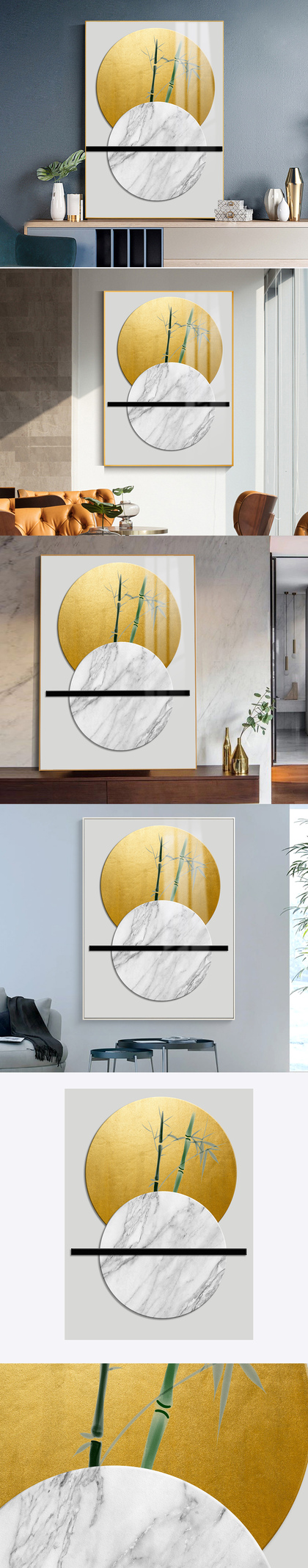 现代新中式风格金色竹子抽象客厅玄关装饰画