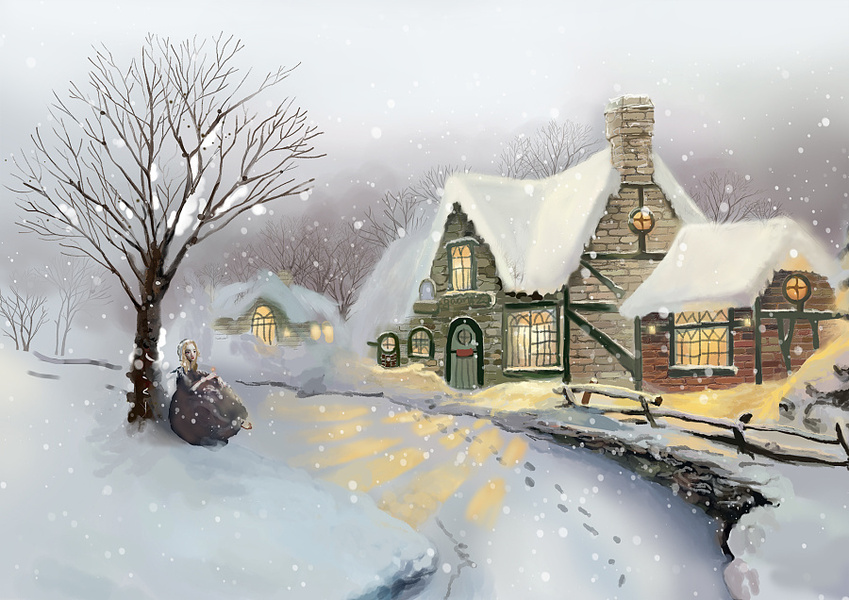 卖火柴的小女孩 温莎牛顿双12首页 版头插画
