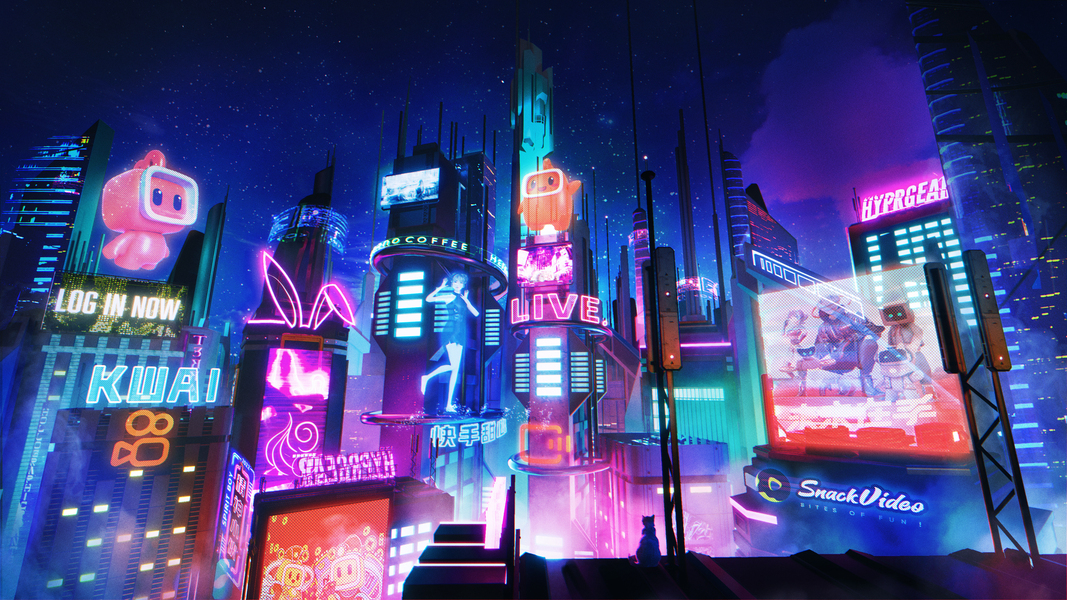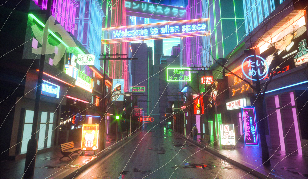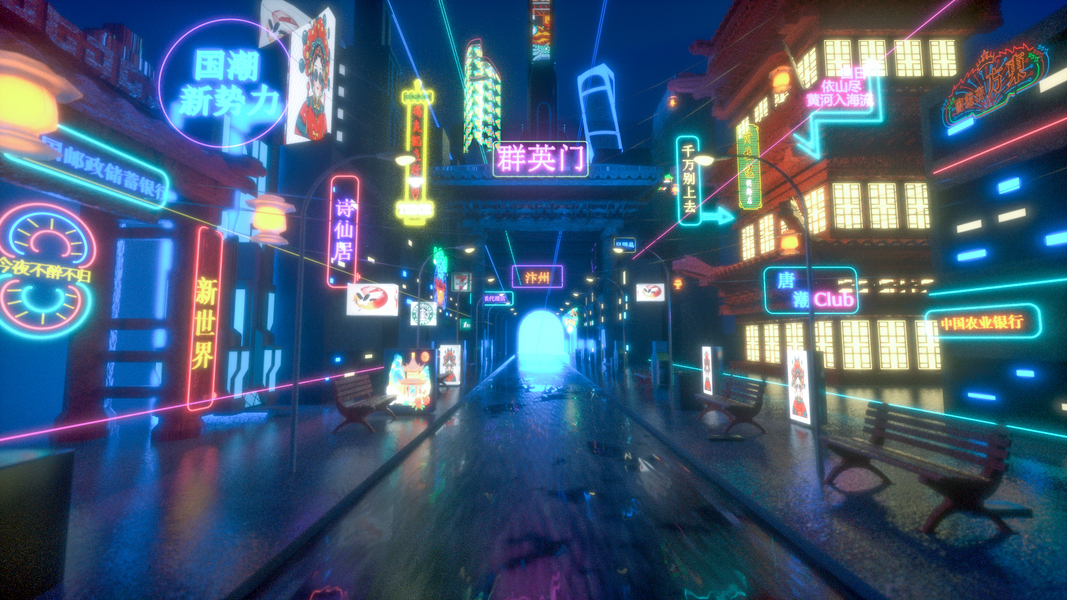 赛博朋克三维场景设计:虚拟线上发布会舞台场景