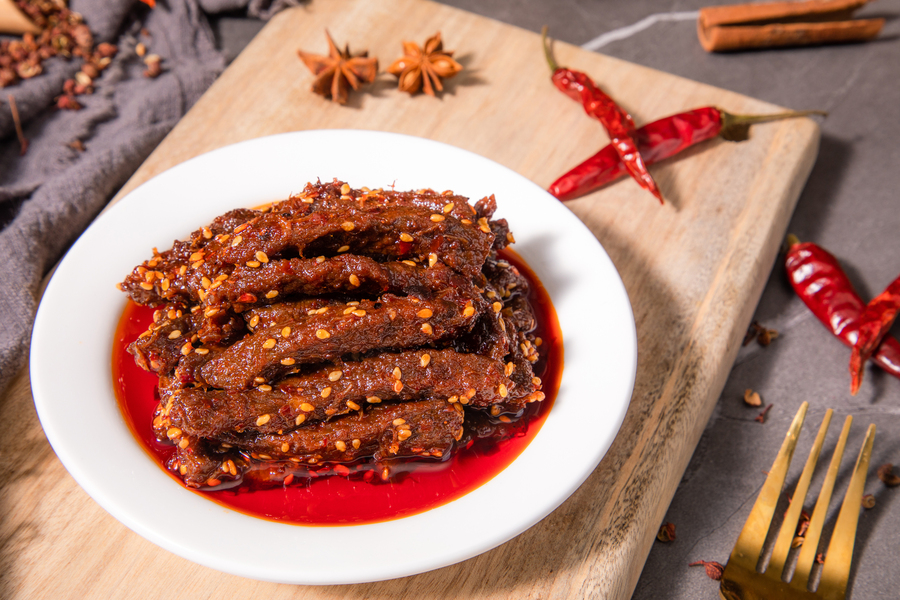 麻辣牛肉肉条休闲食品辣条零食拍摄作品