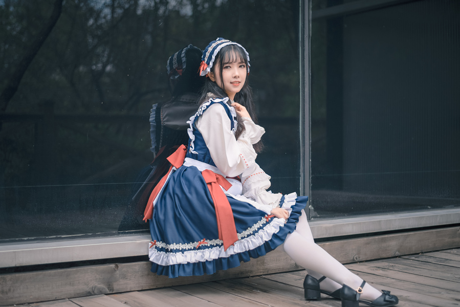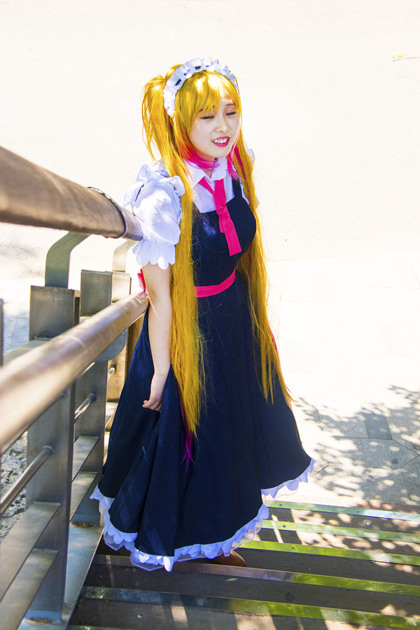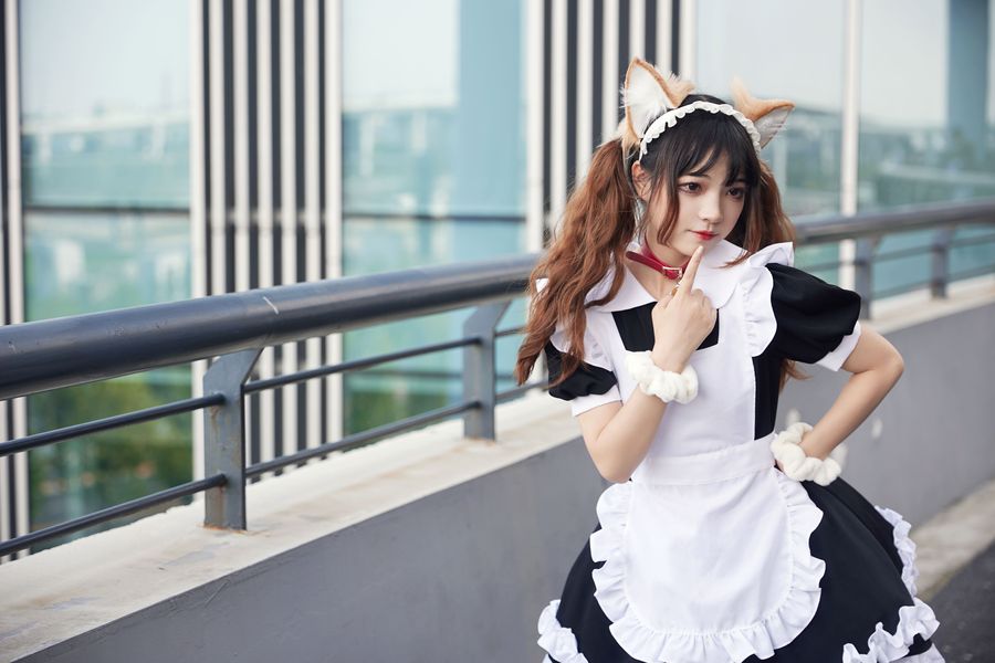 济南萌妹子户外cosplay龙女仆装