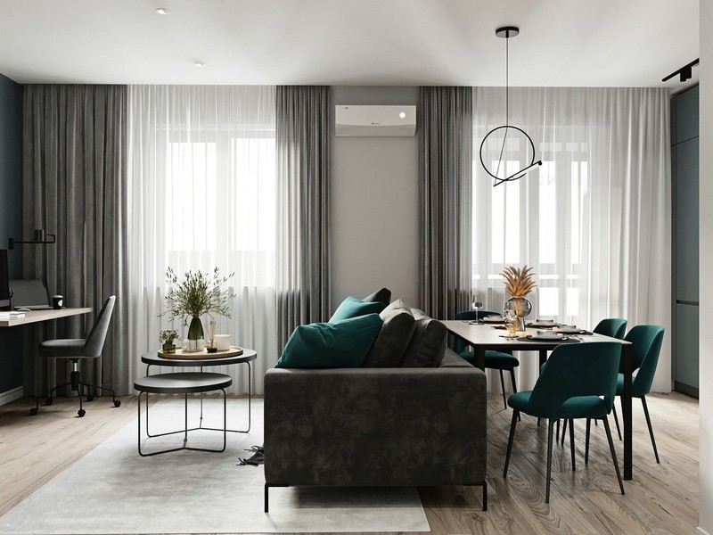 混搭时尚装修设计,墨绿色与金属元素点缀温馨又舒适!
