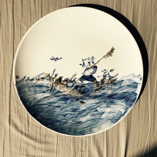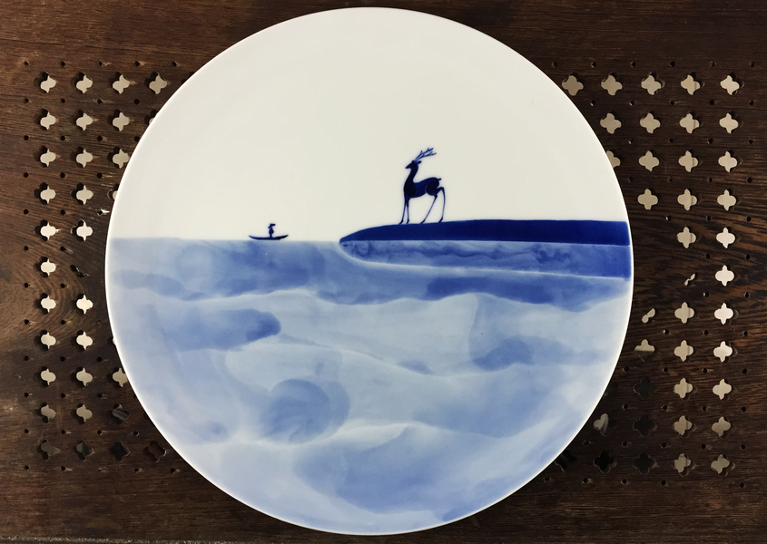 【初于蓝工作室】——《麋鹿·寻找》(青花手绘五彩描金)