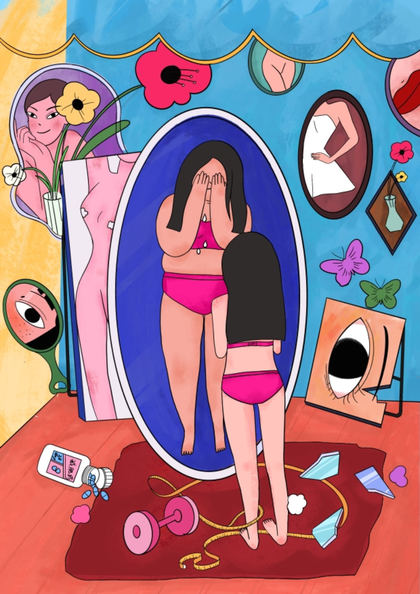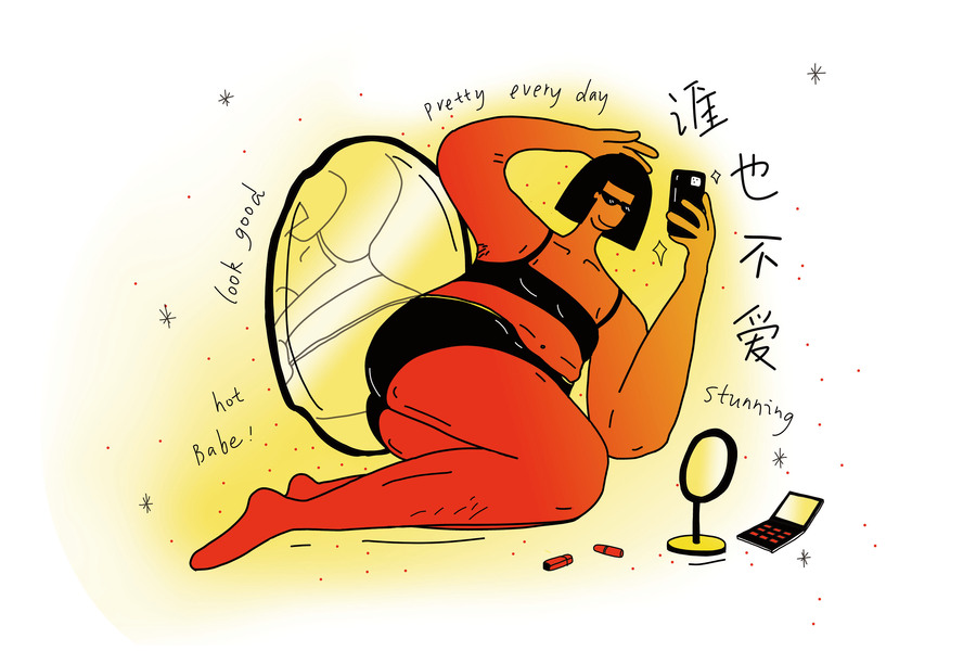魔鬼女孩《思想姜化》插画复古美女海报练习