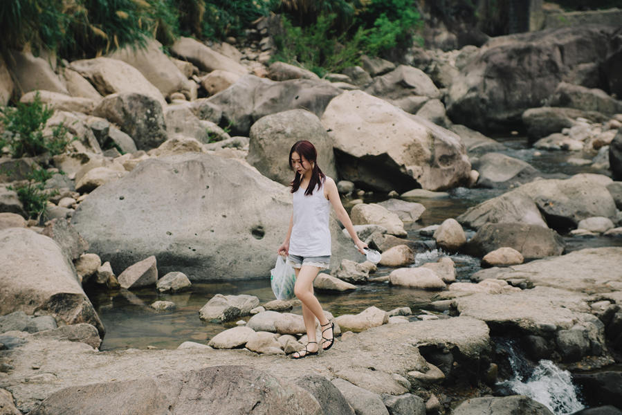 红色条纹衫明媚了九溪的夏天