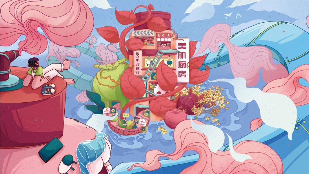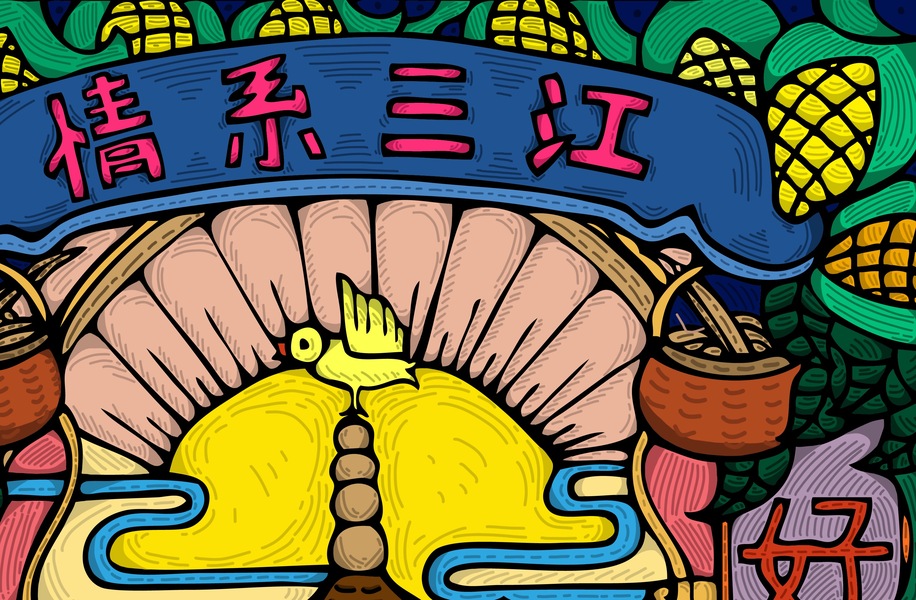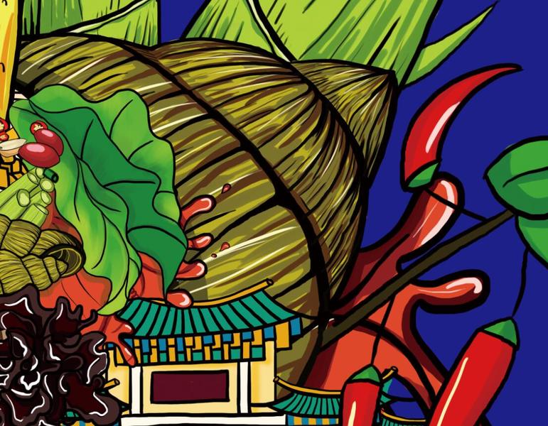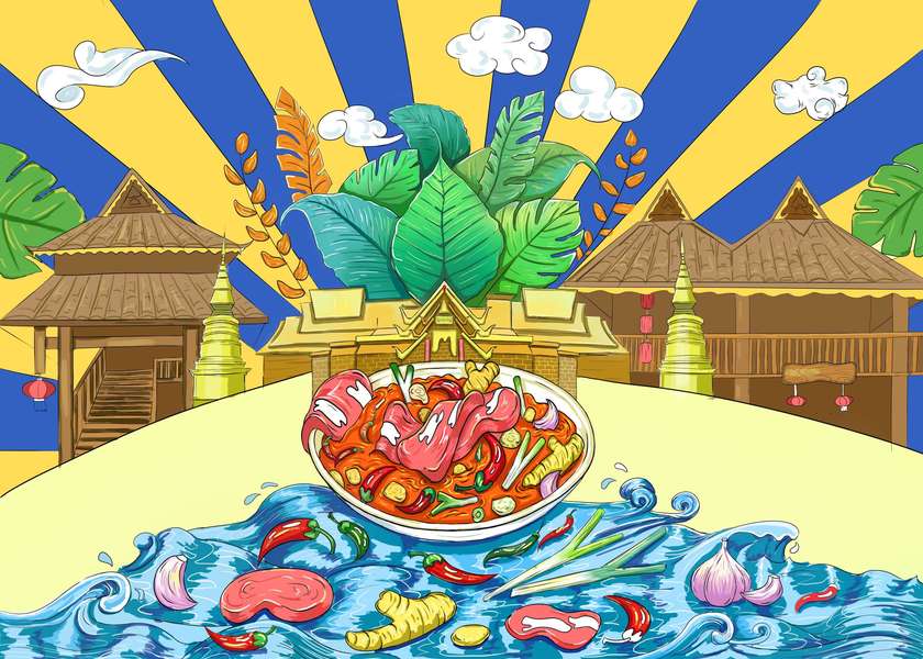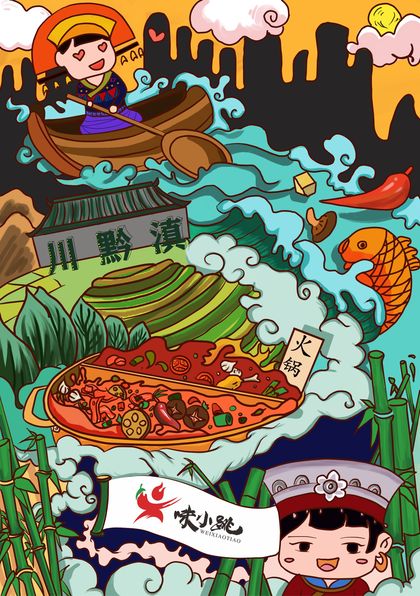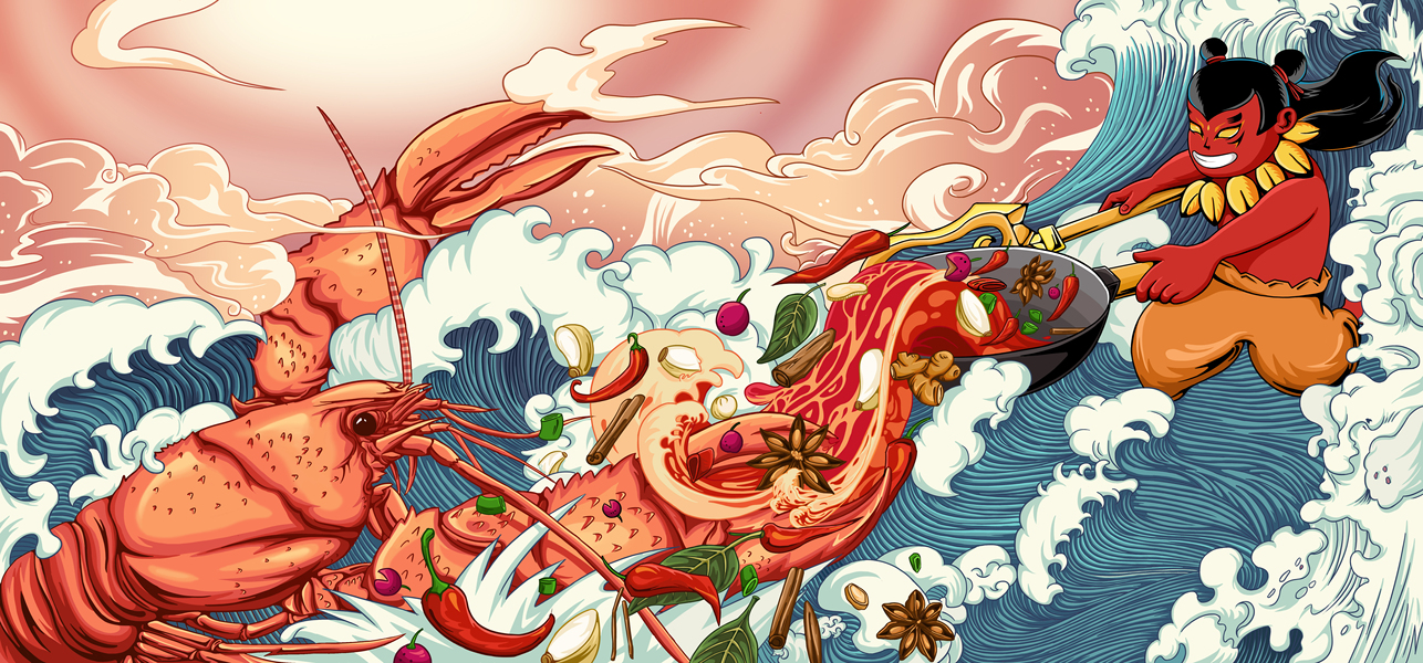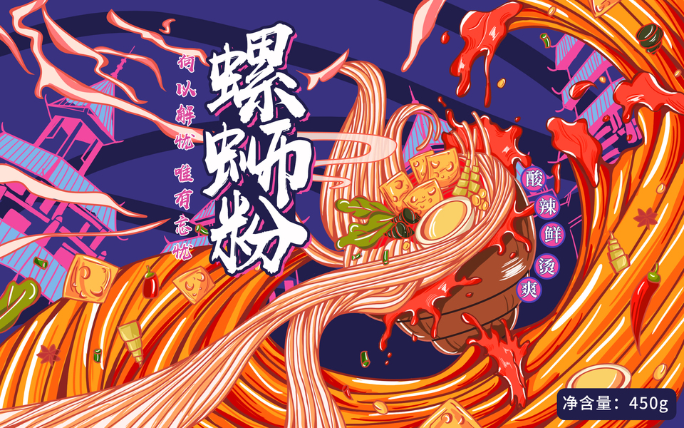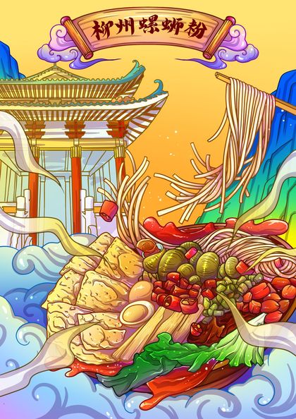 国潮商业插画|手绘插画|柳州螺蛳粉