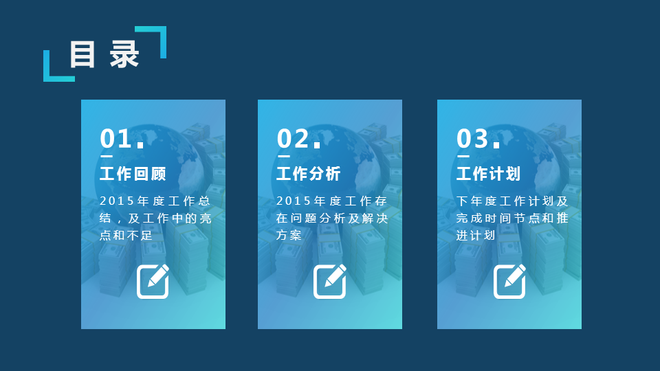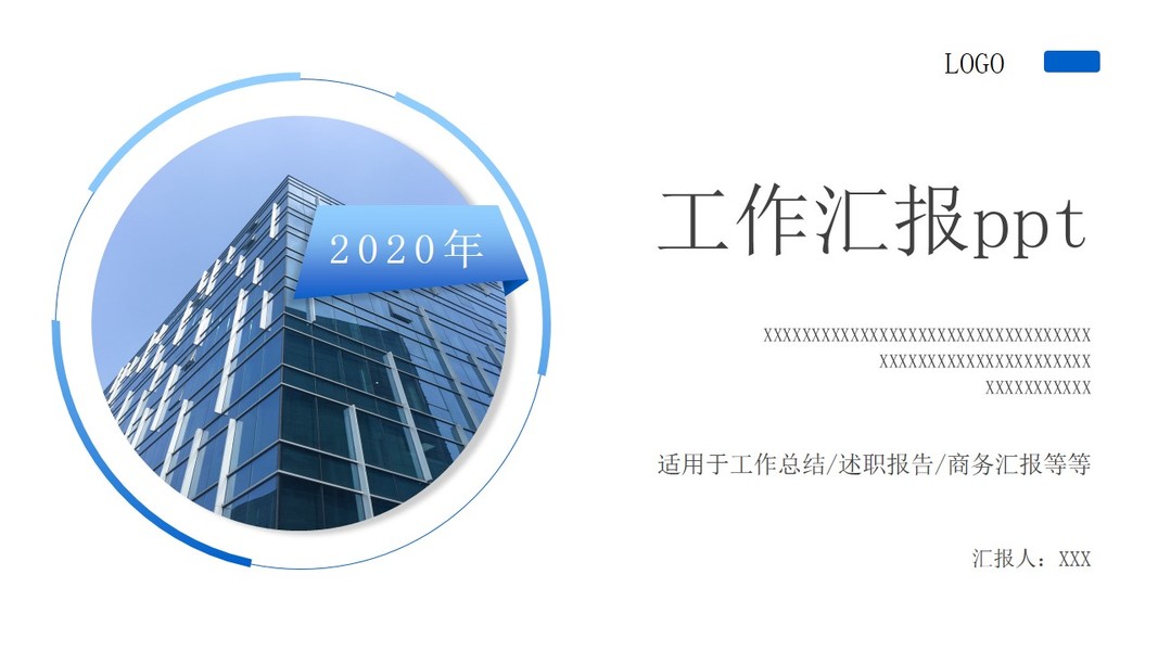 渐变蓝色简约风公司年终总结汇报PPT模板