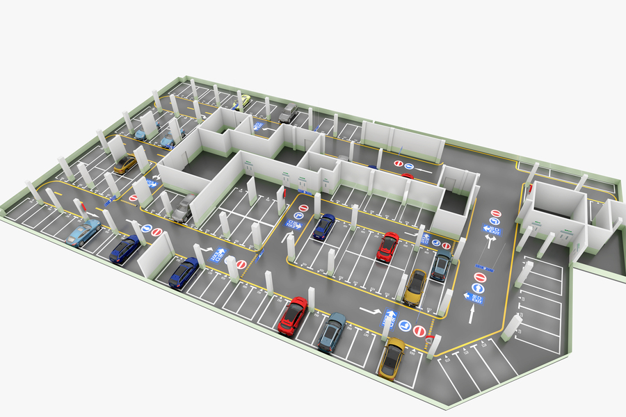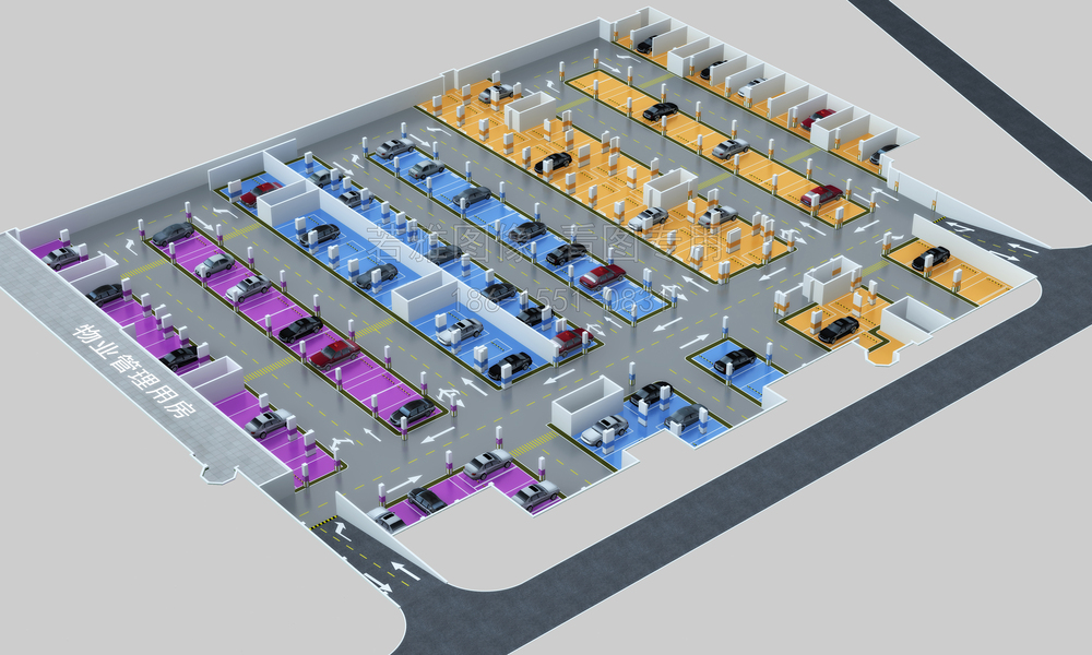 立体车库 地下车库 停车场 道路标线 效果图 若雅图像