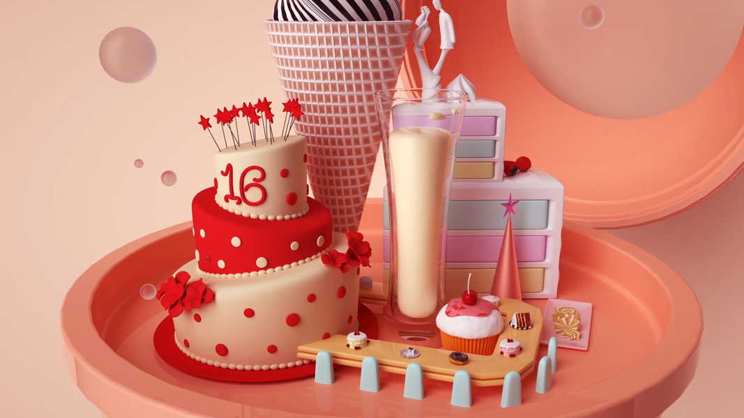 AE模板|美丽3D场景生日派对动画标题展示动效片头优雅
