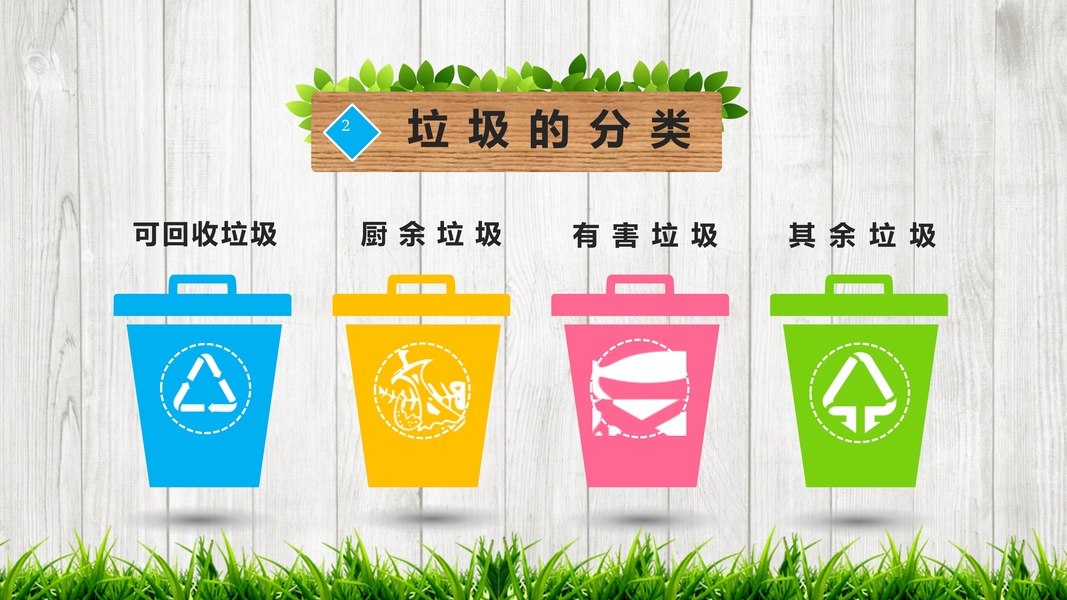 绿色小清新卡通人物垃圾分类环境保护主题PPT模板