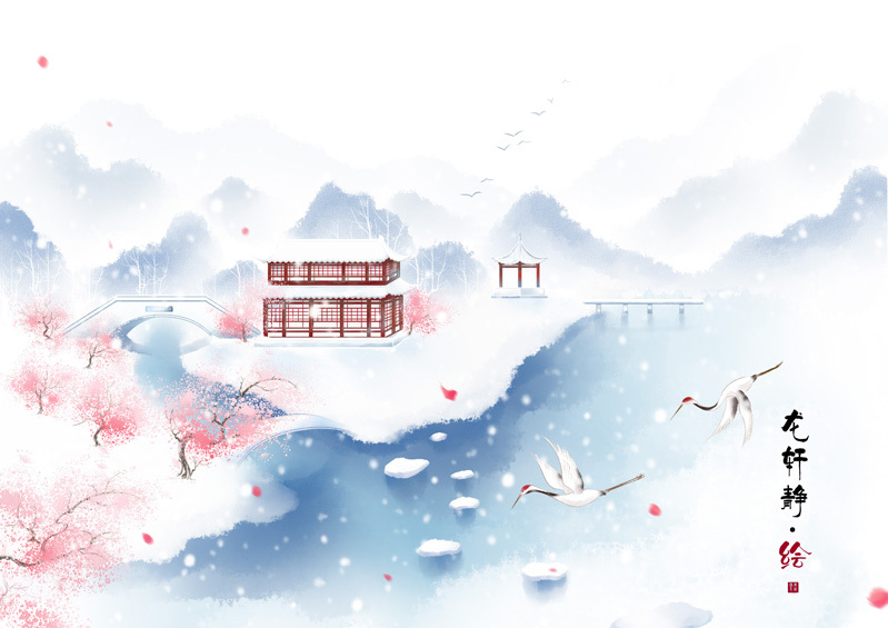 古风水墨意境插画——最爱东山晴后雪,阮红光里涌银山