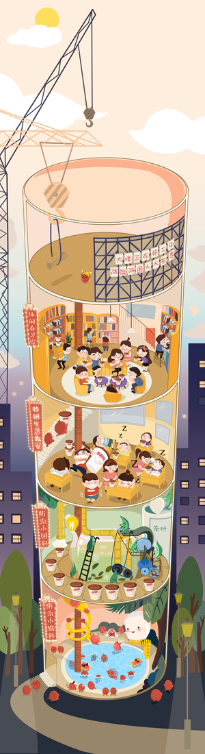 世界美食之旅 北京三星大厦主题餐厅插画