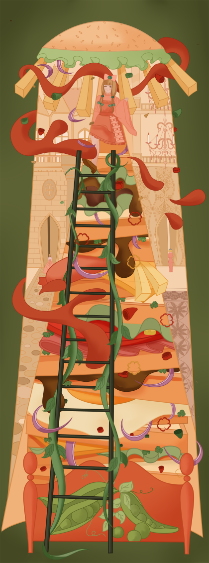 儿童创意插画《美食童话》之《豌豆公主》