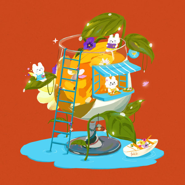 香飘飘奶茶微博5.15-5.19日的插画