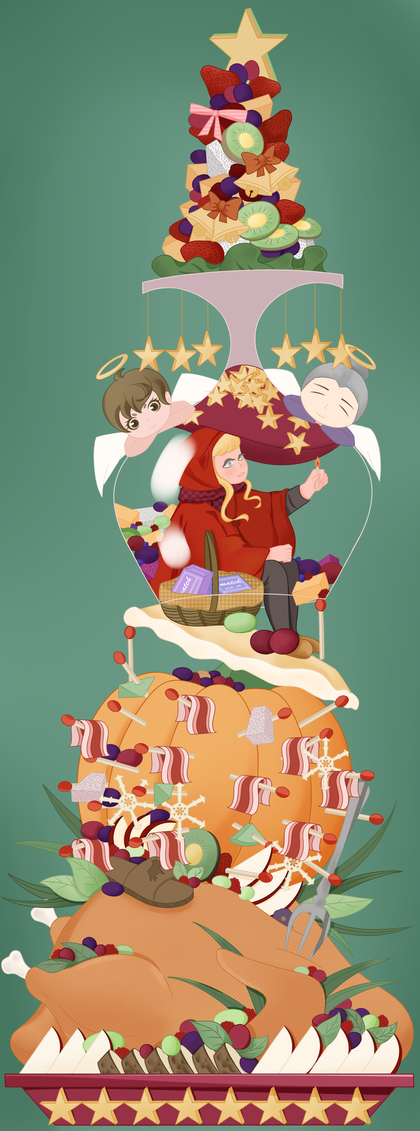 儿童创意插画。美食童话系列之《卖火柴的小女孩》