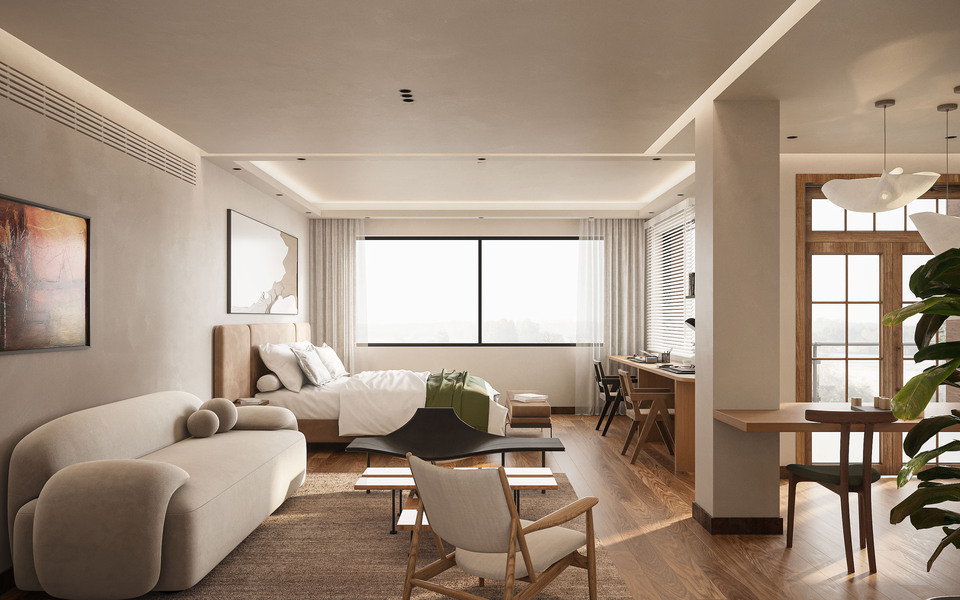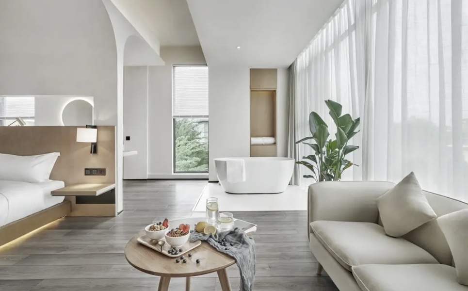雅安民宿酒店设计|纯色打造高级感酒店空间设计