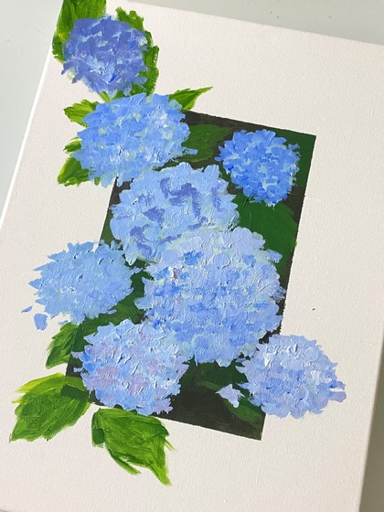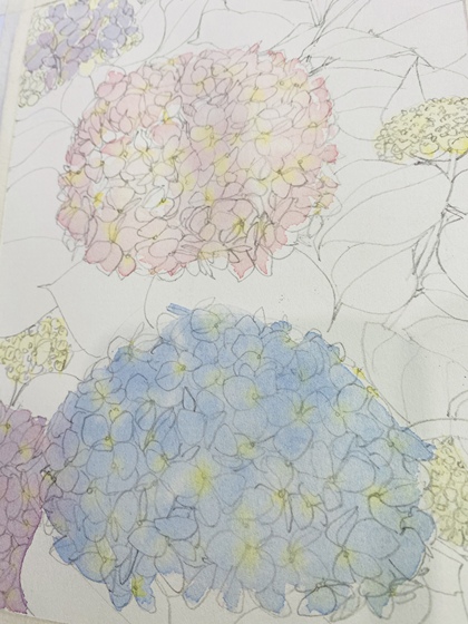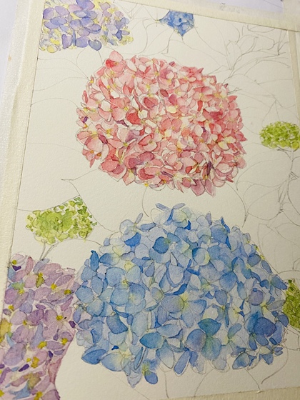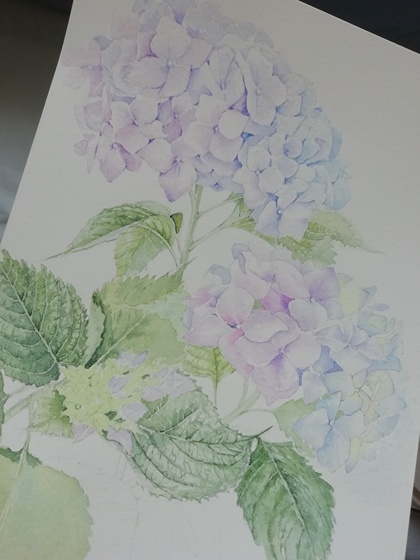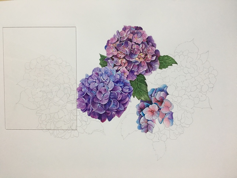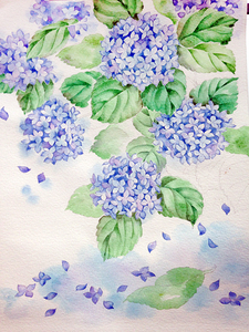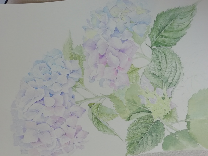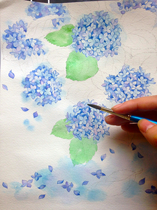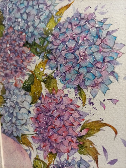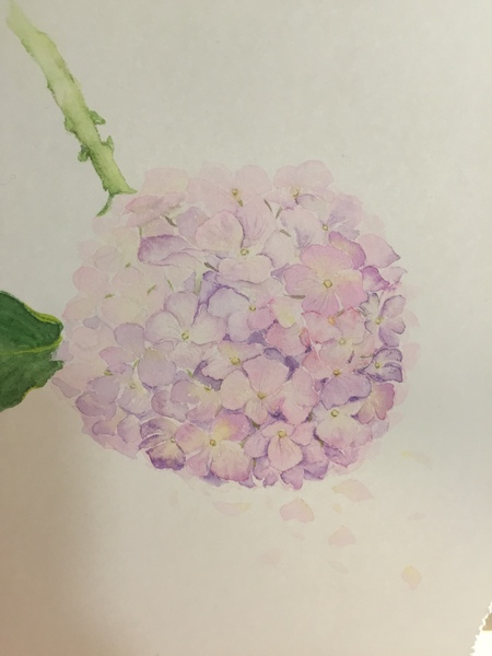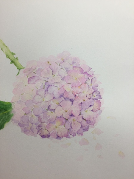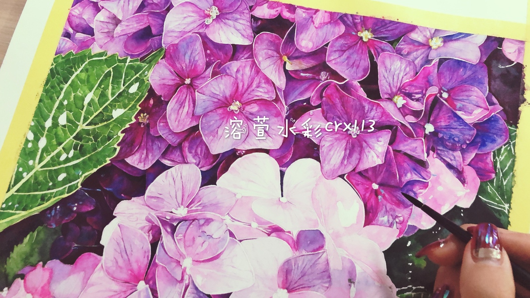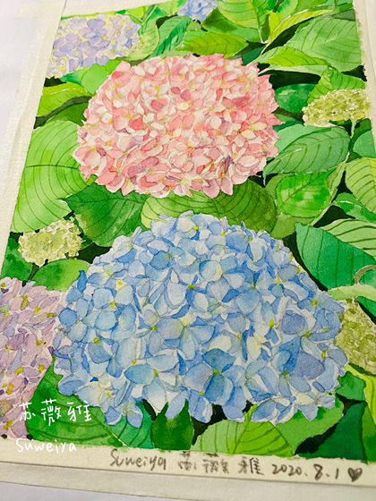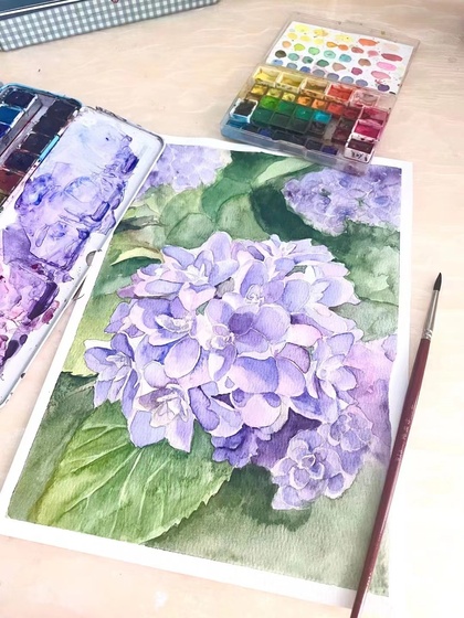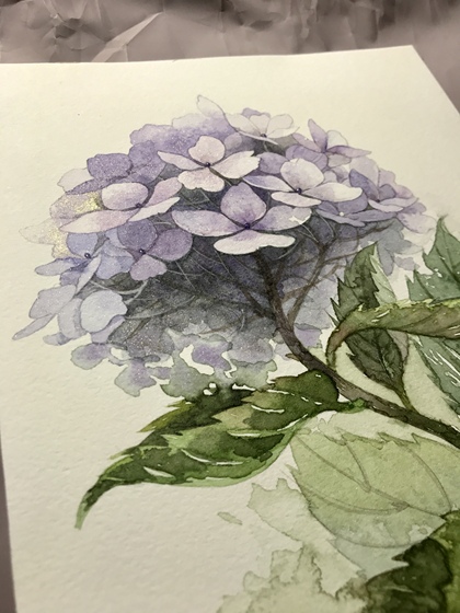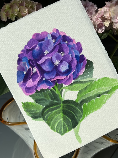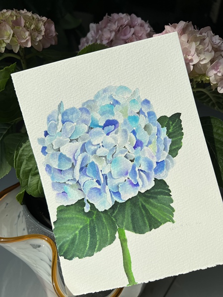 水彩花卉 原创作品 玻璃瓶里的八仙花