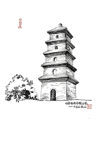 陕西古塔手绘——西安古塔