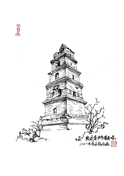 陕西古塔手绘——咸阳古塔