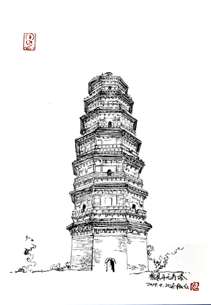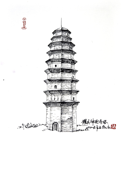 陕西古塔手绘系列之一