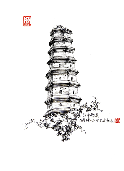 陕西古塔手绘——汉中古塔