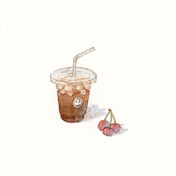 淡彩手绘甜点水彩教程步骤图头像手帐素材卡通森系
