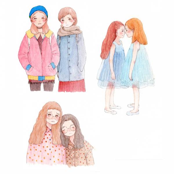 《双生姐妹花》系列三(手绘艺术)可定制约稿