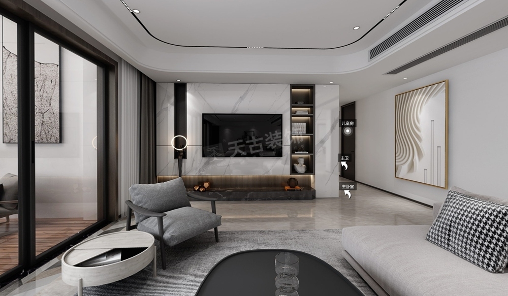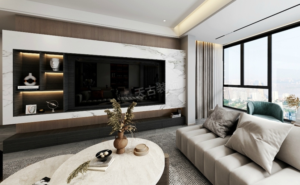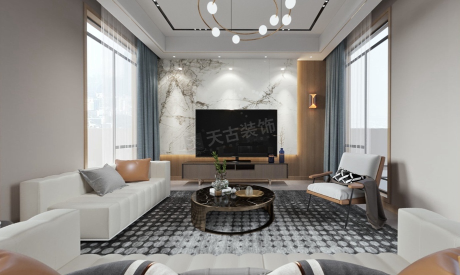 龙湖九里晴川装修,大平层现代风格设计效果图,天古装饰