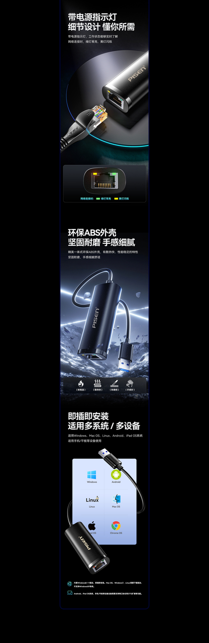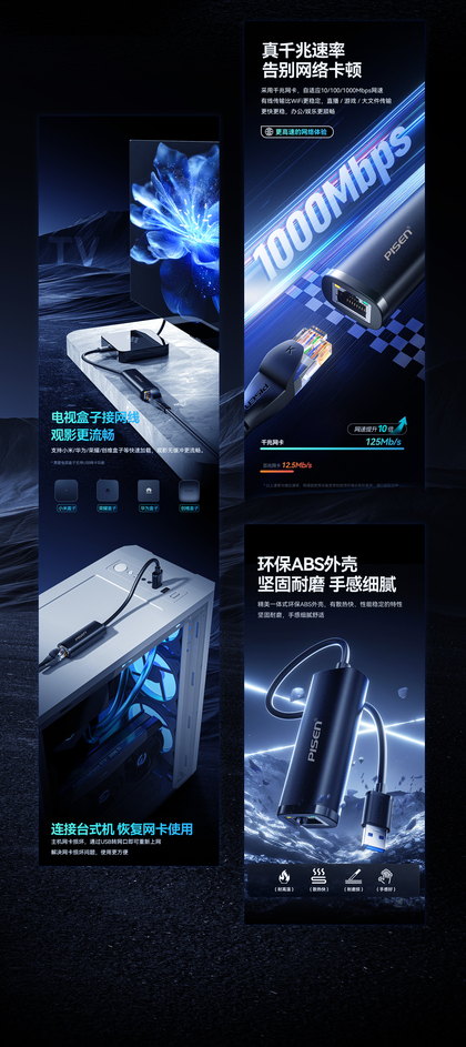超六类网线/千兆网卡/百兆网卡转接器详情页合辑